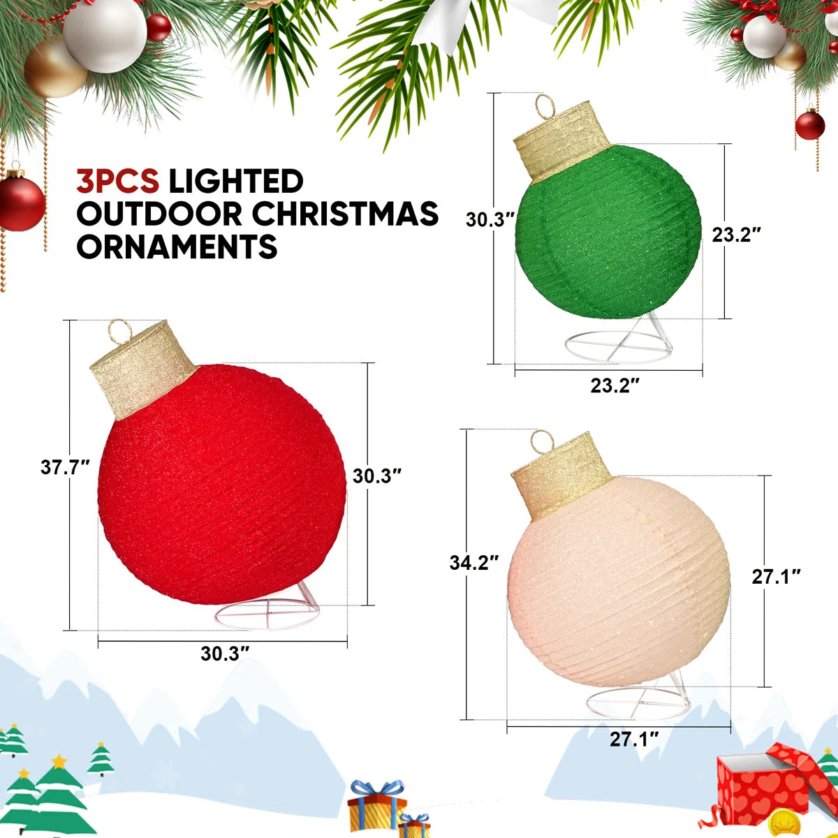 3PCS Lighted Holiday Ornaments for Yard, Garden, and Outdoor Display