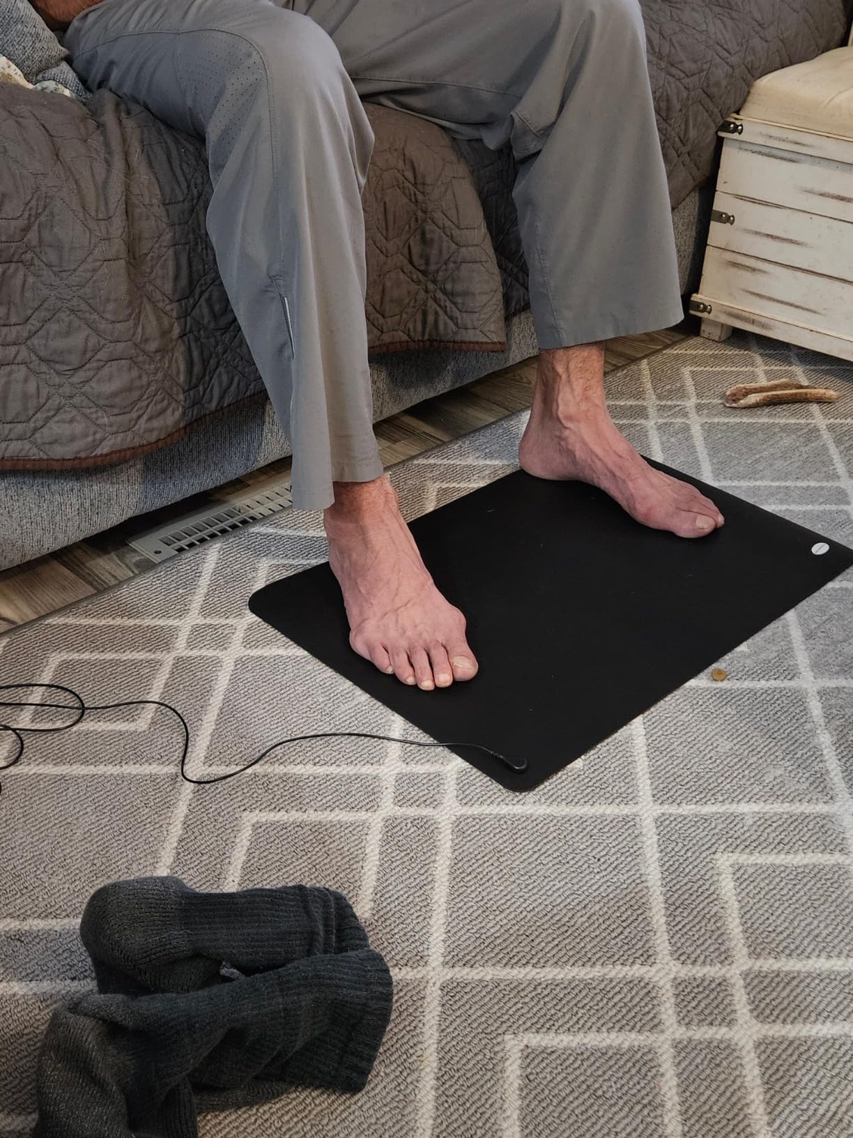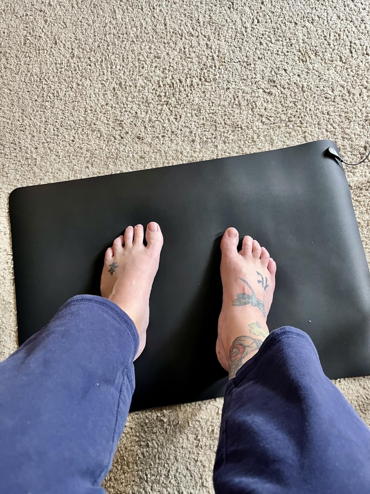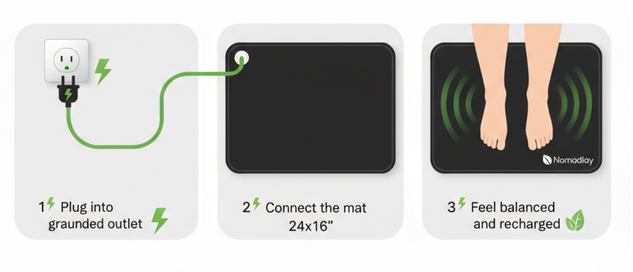 Simply plug the Nomadlay Grounding Mat into a grounded outlet and place your bare feet on it. It safely connects you to the Earth’s natural energy — helping you feel balanced, calm, and recharged.