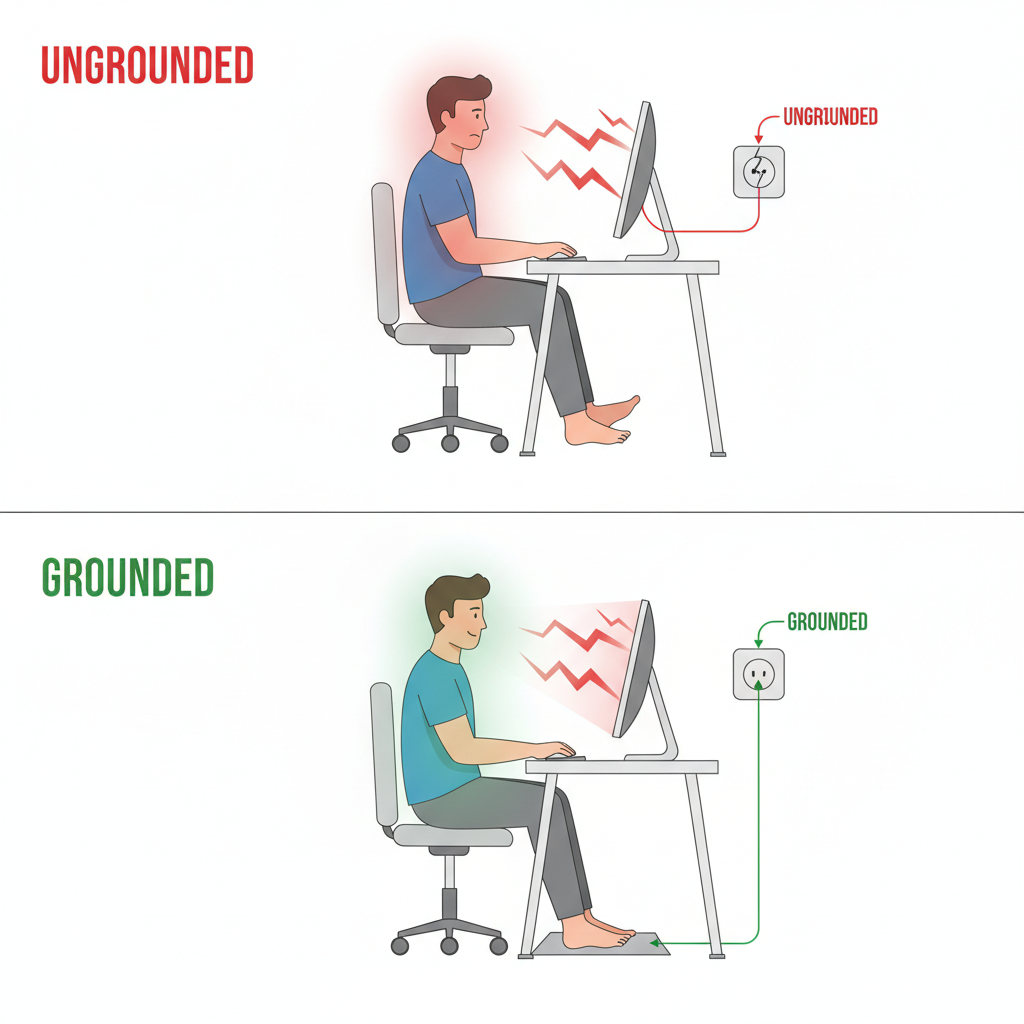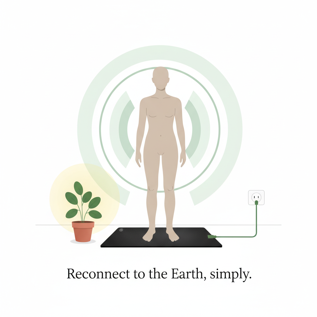 The mat connects to the ground port of a standard outlet, allowing your body to safely absorb the Earth's natural electric energy. This helps balance your body’s internal charge, which may promote relaxation, better sleep, and overall well-being.
